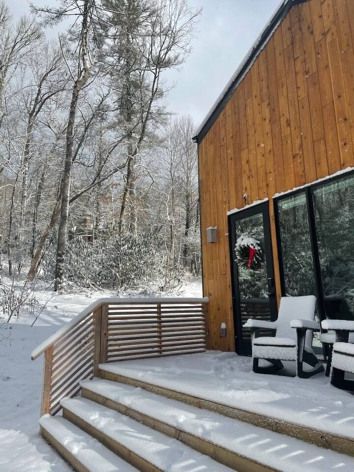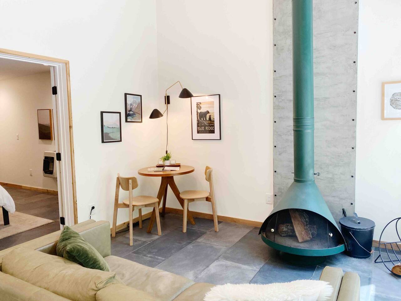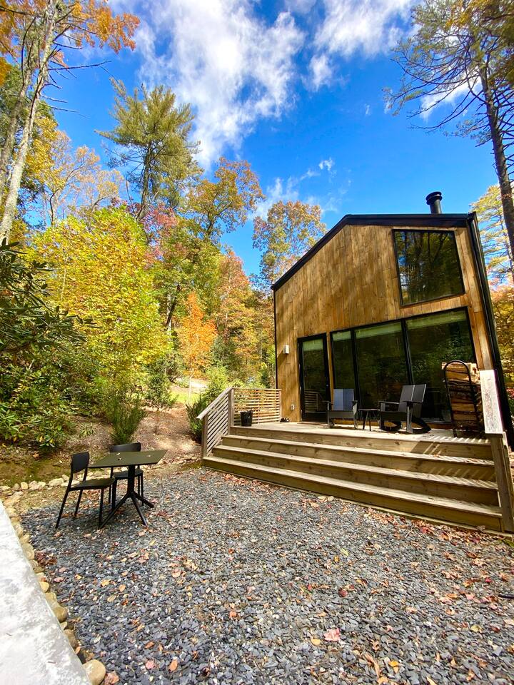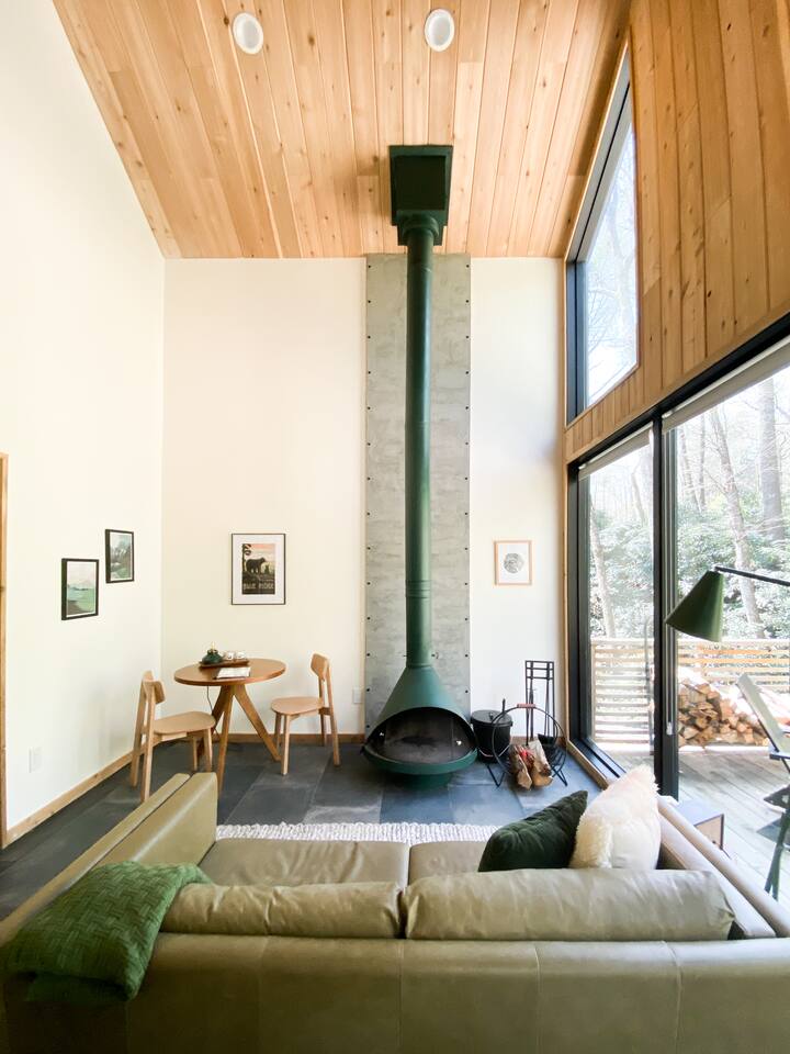 LUNORI: THE NEW MODERN NOSTALGIA Come relax, unwind, and take in the natural beauty of the mountains. At Lunori we've crafted the ultimate relaxation experience to aid you in unplugging and reconnecting with yourself and those around you. The loft offers a king sized bed, full kitchen, wood burning fireplace, porch, heated floors throughout, and modern amenities. --- Be sure to follow us on instagram @ lunori.highlands and join our mailing list for updates and specials!