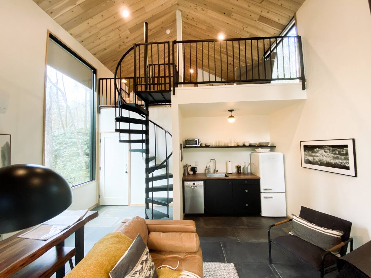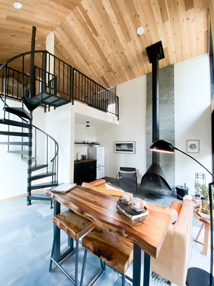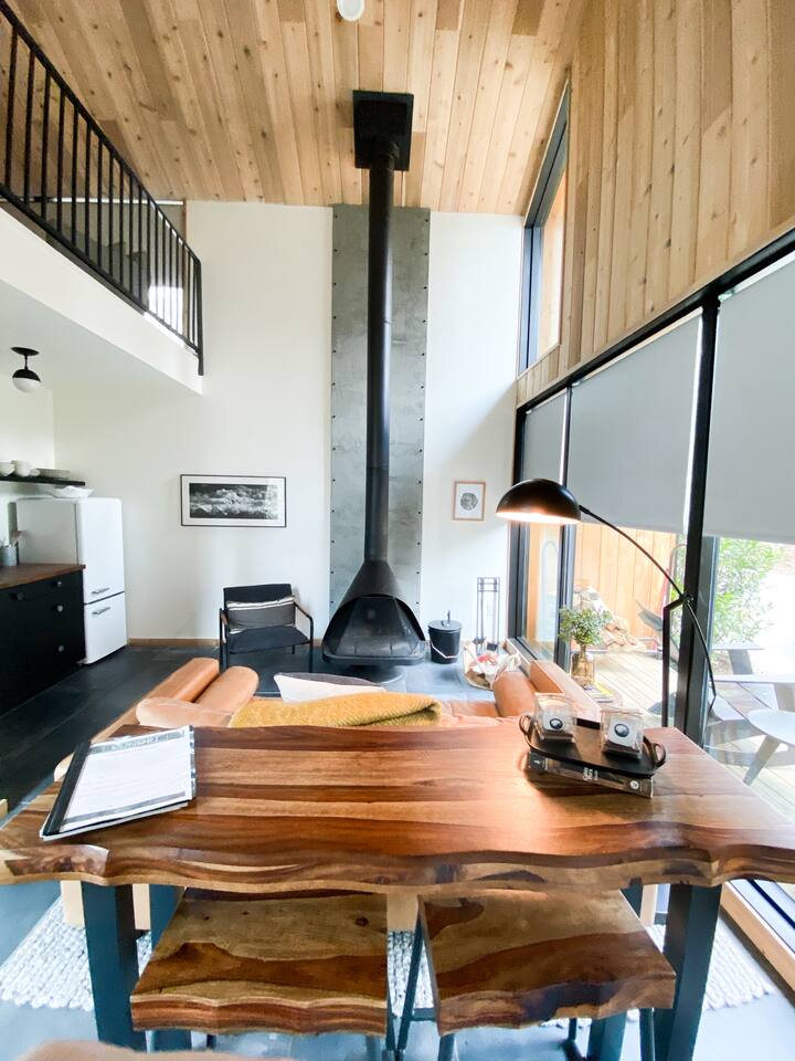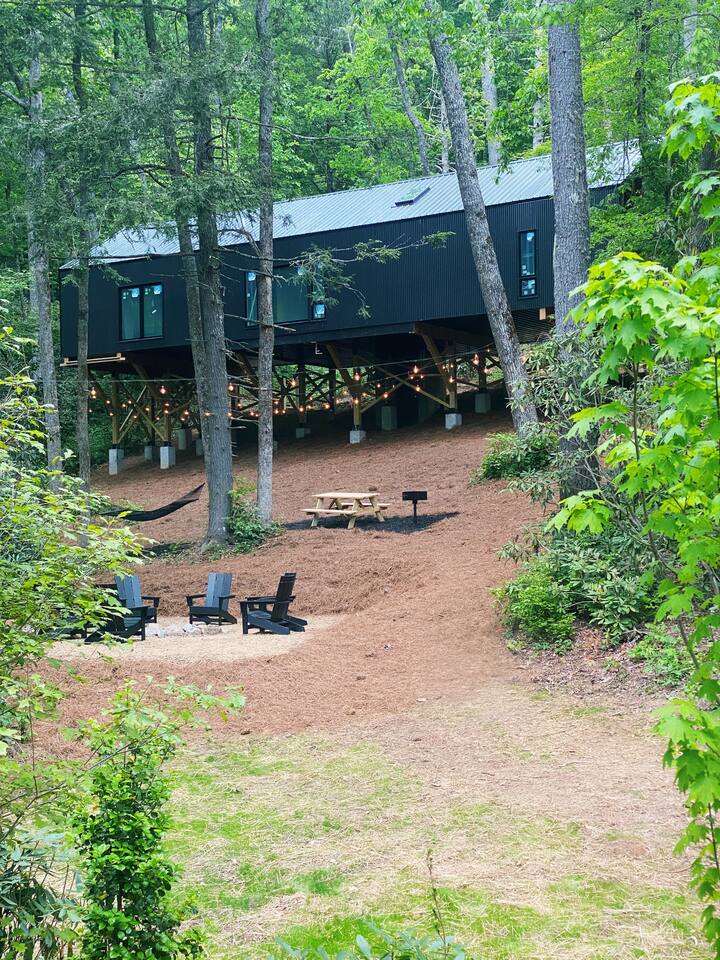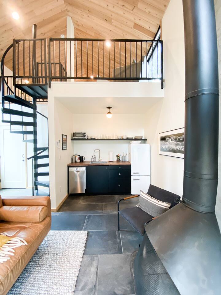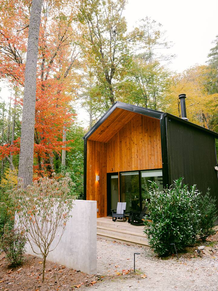 LUNORI: THE NEW MODERN NOSTALGIA Come relax, unwind, and take in the natural beauty of the mountains. At Lunori we've crafted the ultimate relaxation experience to aid you in unplugging and reconnecting with yourself and those around you. The unit offers a king sized bed, kitchenette, wood burning fireplace, covered porch, heated floors, and modern amenities. --- Be sure to follow us on instagram @ lunori.highlands and join our mailing list for updates and specials!