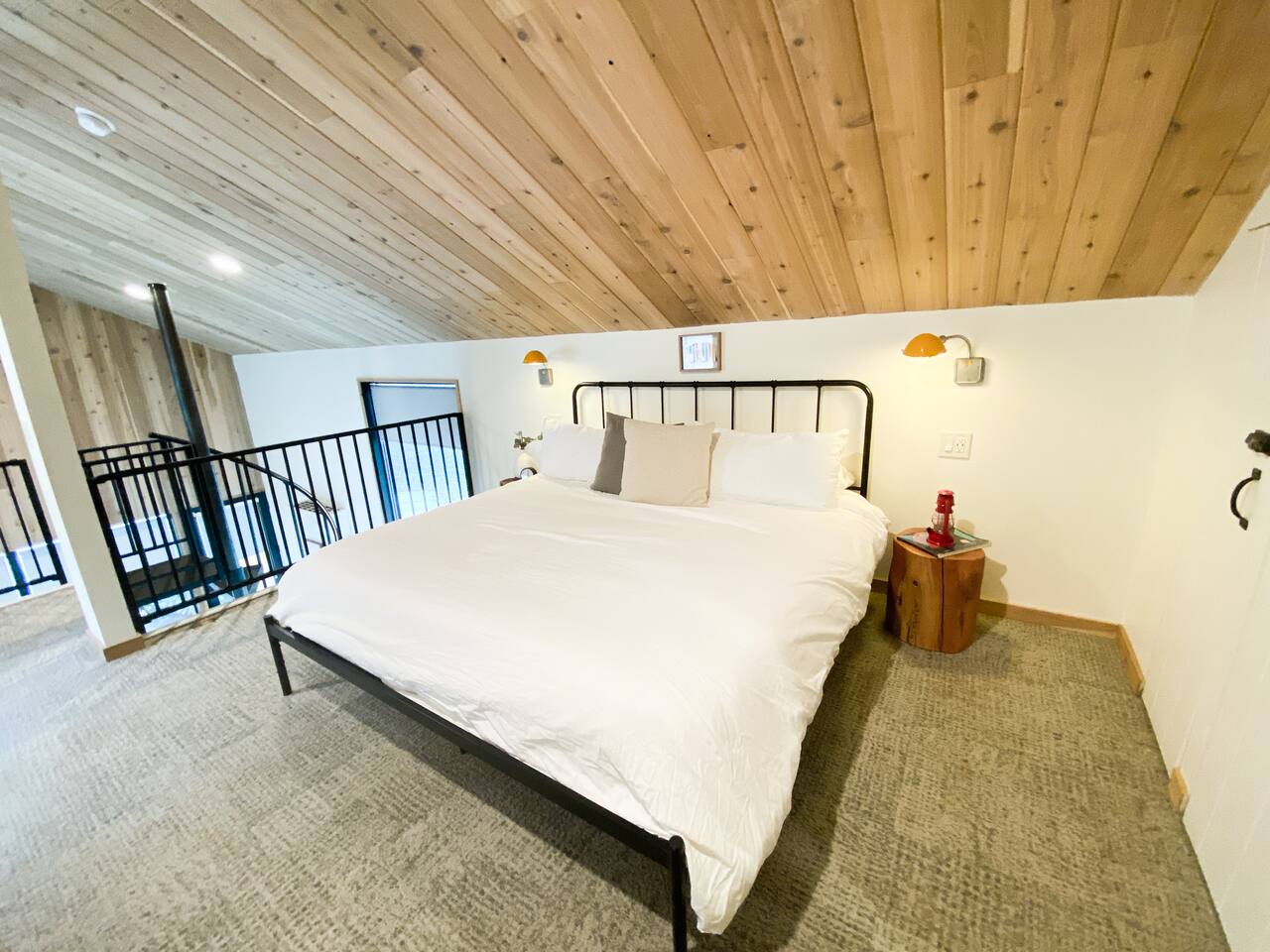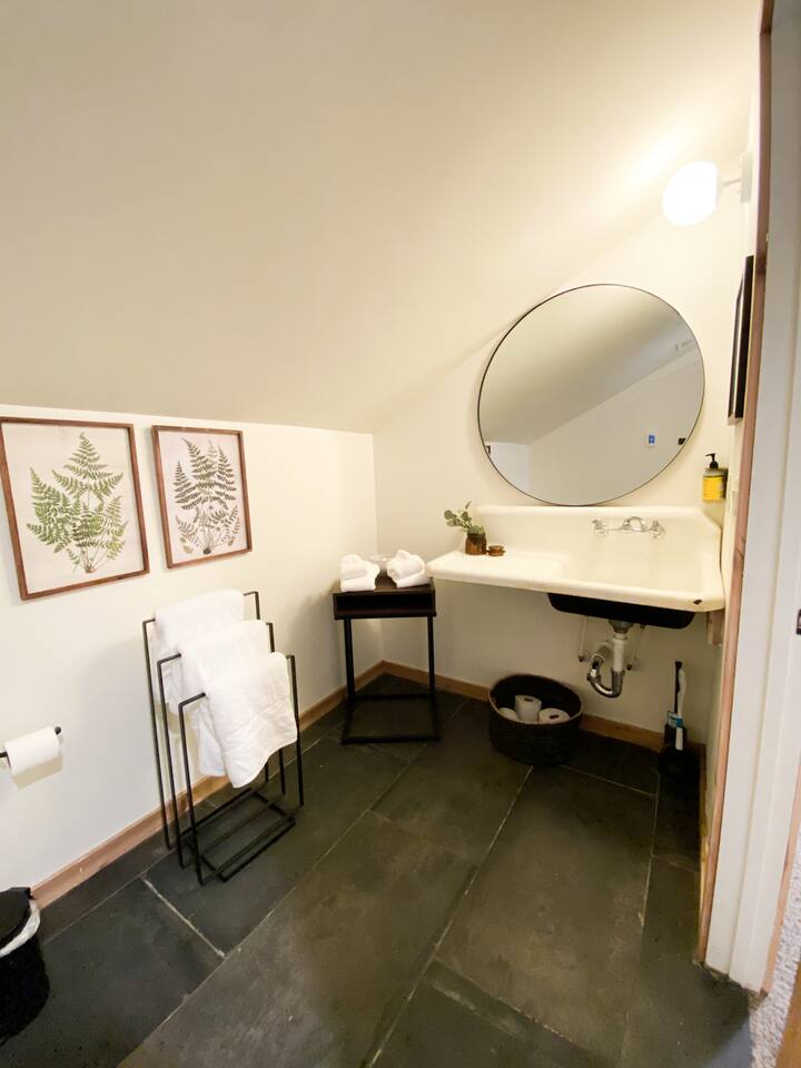 This is a private unit in a duplex. There are two hotel style locked off connecting doors between units which enable the duplex to be rented as one 2 suite cabin. If you would like to rent both units, please contact us. Please note that the 2 guest limit applies to children and infants as well. We are family-friendly in our Treehouse building, Lofts 3 and 4. As a courtesy to guests in our other units and neighbors, the communal area (fire pit and picnic area) closes promptly at 10pm nightly and is restricted to guest use only. As stated above, we do not have televisions. We recommend bringing a laptop or tablet if you'd like to watch a movie. Please note that early check in requests are confirmed 24 hours prior check in. We love our pets too, but we do have a strict no pet policy at this time. Unfortunately we cannot consider any animals (trained, hypoallergenic, etc.) to stay in the garden lofts. We do accept dogs in our Treehouse building, Lofts 3 & 4. The cabin is located in a wooded area but due to our proximity to town, some neighboring homes can be seen from the property. Please note the unit has a wood burning fireplace. If you have sensitivities, we would suggest renting loft 3 or 4 which both have gas fireplaces.